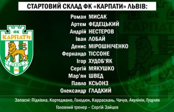 «Карпати»: Мисак, Федецький, Нестеров, Лобай, Мірошніченко, Тіссоне (Акулінін, 78), Худоб’як, Мякушко, Швед (Чачуа, 52), Ксьонз, Гладкий (Карраскаль, 68).