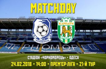 У суботу, 24 лютого, о 14:00 господарі одеського стадіону «Чорноморець» прийматимуть львівські «Карпати» в матчі 21-го туру чемпіонату України з футболу серед команд прем’єр-ліги.