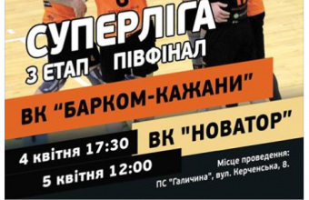 4 та 5 квітня волейбольний клуб «Барком-Кажани» проведе півфінальні поєдинки плей-офф чемпіонату України серед чоловічих команд суперліги проти хмельницького «Новатора».