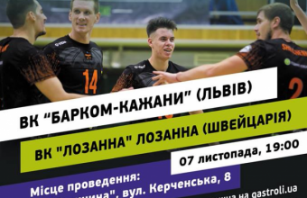 У середу, 7 листопада, о 19:00 у палаці спорту «Галичина» на вулиці Керченській у Львові розпочнеться матч 1/32 фіналу Кубка Європейської конфедерації волейболу між львівським клубом «Барком-Кажани» й швейцарською «Лозанною».