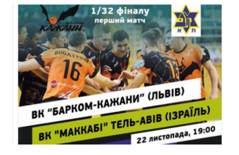 Матч 1/32 Кубка Європейської конфедерації волейболу між львівським ВК «Барком-Кажани» та волейбольним клубом «Маккабі» із Тель-Авіва розпочнеться в середу, 22 листопада, в спорткомплексі «Галичина» на вулиці Керченській (№8) о 19.00.
