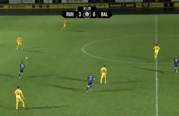 Матч 16-го туру чемпіонату України з футболу серед клубів першої ліги, а якому «Рух» приймав у Львові «Балкани», завершився з рахунком 3:0.