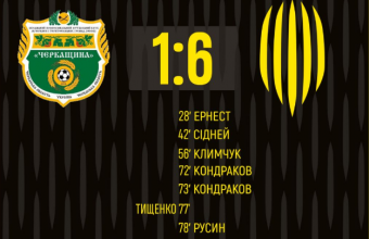 До честі господарів, один гол вони таки відквитали, щоправда, коли забивав Тищенко, здалось, що гравець підіграв собі рукою. У будь-якому разі, «рухівці» не зупинились, і вже в наступній стрімкій атаці шостий гол у ворота «Черкащини» забив Русин.
