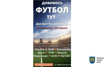 «Запрошуємо львів’ян та гостей міста на трансляцію світових матчів до Центру Довженка на дах. Це гарна локація - тераса, де є всі умови для комфортного перегляду футболу», - зазначила директорка Центру Довженка Марта Іванишин.