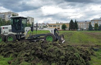 Вже виконано роботи з планування стадіону та вирівнювання території грейдером.