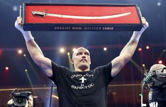 Після оголошення результату поєдинку Олександр Усик підняв над головою історичну шаблю, що належала українському гетьману Івану Мазепі, який воював проти Московії за незалежність України.