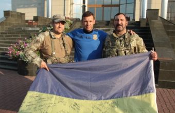 «Повертаючись після виконаної спецоперації у зоні АТО, на збір до національної команди завітали наші бійці. Хлопці якраз приїхали із передмістя Донецька Мар’їнки, де вони охороняли лінію розмежування з територією, окупованою терористичними військами.