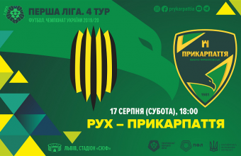 У суботу, 17-го серпня, о 18:00 на стадіоні «СКІФ» у Львові розпочнеться матч четвертого туру чемпіонату України серед клубів першої ліги, в якому «Рух» прийматиме івано-франківське «Прикарпаття».