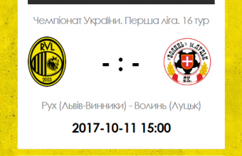 Матч 16-го туру чемпіонату України з футболу в першій лізі між командами «Рух» і «Волинь» розпочнеться на стадіоні імені Богдана Маркевича на вулиці Спортовій у Винниках в неділю, 11 жовтня, о 15.00.