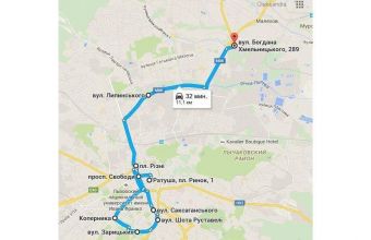 Наш маршрут: «Ратуша – вулиця Беринди – проспект Свободи – площа Різні – проспект Свободи – проспект Шевченка – вулиця Саксаганського – вулиця Костомарова – вулиця Шота Руставелі – вулиця Зарицьких – вулиця Болгарська – вулиця Вітовського – вулиця Коперніка – площа Міцкевіча – проспект Свободи – площа Різні – проспект Чорновола – вулиця Липинського – вулиця Хмельницького – Галицьке перехрестя».