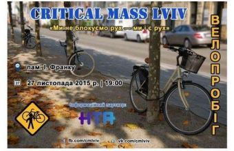 «27 листопада Львовом проїде «Критична маса» – щомісячний велопробіг за права велосипедистів на дорогах. Збір учасників – о 19:00 біля пам'ятника Іванові Франку навпроти Львівського національного університету імені Івана Франка. Долучайтеся!», – повідомили на сторінці Го «Варта 1» в інтернет-мережі «Facebook».