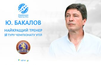 Всеукраїнське об’єднання тренерів з футболу назвало кращим тренером 18-го туру чемпіонату України наставника «Львова» Юрія Бакалова.