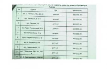 Як повідомив член комісії культури, молодіжної політики та спорту Львівської міськради Володимир Гринишин, у переліку – десять адрес. Серед них – вулиці Петлюри, Тракт Глинянський і Хмельницького, проспект Червоної Калини та інші. Передбачена сума на будівництво – 3,5 млн. гривень.