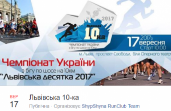 У прес-службі Львівської міськради повідомили: «У неділю, 17 вересня, у Львові пройде Чемпіонат України з бігу на 10 кілометрів, організаторами якого є Федерація легкої атлетики Львівської області спільно з управлінням молоді та спорту Львівської міської ради. Відкриття чемпіонату розпочнеться о 9.00 на площі перед Львівським національним академічним театром опери та балету імені Соломії Крушельницької».