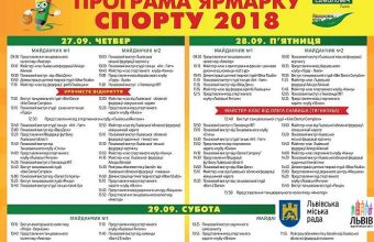 Про це повідомили в четвер, 27 вересня, в прес-службі Львівської міськради , де також розповіли: «Цьогоріч «Ярмарок спорту» відбуватиметься з 27 до 29 вересня у спорткомплексі «Динамо» на вулиці Вітовського. Усі охочі зможуть спробувати себе у понад ста видах спорту».