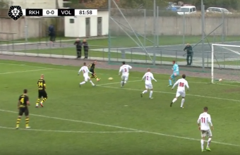 Орендований «Рухом» у львівських «Карпат» Назар Вербний влучає у ворота «Волині»