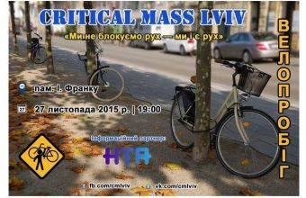 «27 листопада Львовом проїде «Критична маса» – щомісячний велопробіг за права велосипедистів на дорогах. Збір учасників – о 19:00 біля пам'ятника Іванові Франку навпроти Львівського національного університету імені Івана Франка. Долучайтеся!», – повідомили сьогодні, 26 листопада, на сторінці Го «Варта 1» в інтернет-мережі «Facebook».