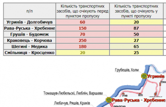 274 транспортні засоби очікують у пунктах пропуску на Львівщині, а ще 730 скупчилися перед ними.