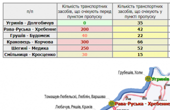 242 транспортні засоби очікують у пунктах пропуску на Львівщині, а ще 820 – перед ними.