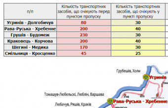 195 транспортних засобів очікують у пунктах пропуску на Львівщині, а ще 925 скупчилися перед ними.