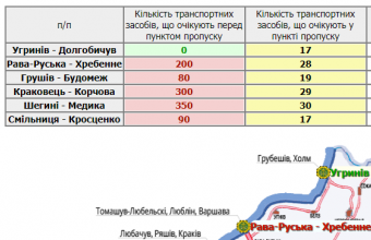 150 транспортних засобів очікують у пунктах пропуску на Львівщині, а ще 1020 – перед ними.