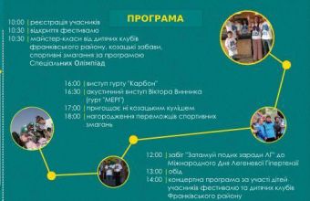 «Також під час фестивалю відбудуться змагання серед шкіл-інтернатів Львівщини за програмою Спеціальних Олімпіад. Діти зможуть позмагатися в таких дисциплінах, як: футбол, флорбол, настільний теніс, каякінг та баскетбол. Переможці змагань отримають ліцензії на ІІІ «SO Open Games in Lviv».