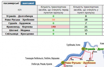 Зокрема, 140 – автомобілів стоять перед прикордонним пунктом пропуску «Краковець» на Львівщині. Такі дані опублікували в неділю, 17 лютого, на сайті Львівської облдержадміністрації.