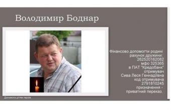 «В понеділок відбудеться прощання з нашим другом , братом, волонтером, героєм! Аж тепер сім'я зможе провести в останню путь вірного сина України Володимира Боднара, який загинув в результаті підриву на фугасі 17 травня неподалік міста Попасна.