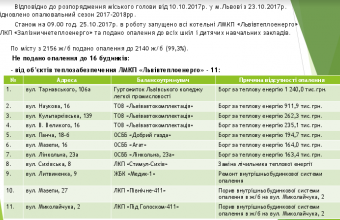У міськраді запевнили: «Зі 2156 житлових будинків Львова, які мають центральне опалення, тепло отримують 2140 будинків. Це 99,3%»