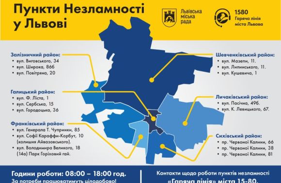 Станом на зараз у Львові пункти незламності працюють за адресами: