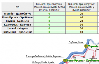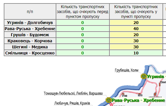 40 автівок стоять у пункті пропуску в Рава-Руській, а по 30 – у Краковці й Шегинях.