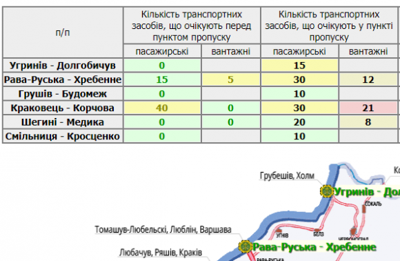 120 транспортних засобів очікують у пунктах пропуску на Львівщині, а 55 – перед ними.