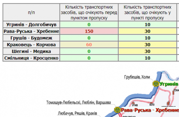 У прес-службі Львівської ОДА повідомили сьогодні, 1 лютого, що перед пунктом пропуску «Рава-Руська» застрягли 180 автівок, а ще 30 очікують перед ним.