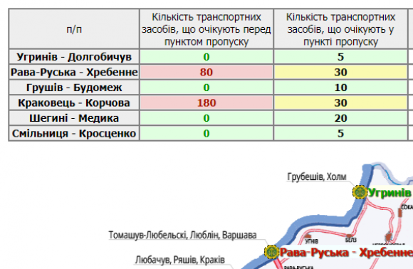 У прес-службі Львівської облдержадміністрації повідомили сьогодні, 13 лютого, що перед пунктом пропуску «Рава-Руська» застрягли 180 транспортних засобів.