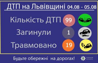 4 та 5 серпня на Львівщині були зареєстровані 99 ДТП.