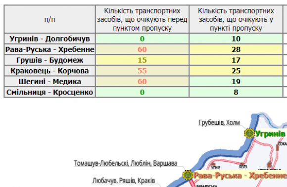 У прес-службі Львівської ОДА повідомили сьогодні, 31 січня, що 107 автівок застрягли перед прикордонними пунктами пропуску на Львівщині, а 190 – перед ними.