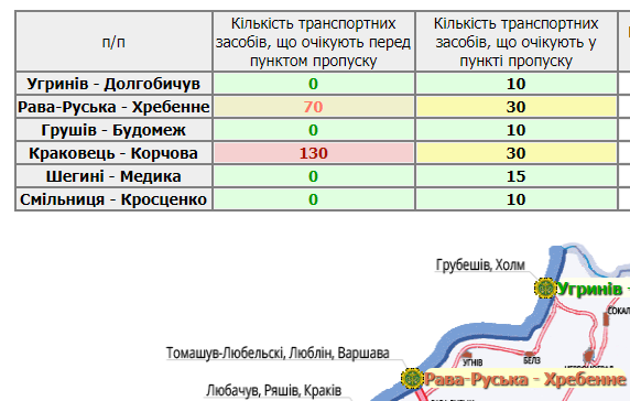 130 транспортних засобів очікують перед пунктом пропуску в Краковці, а 70 – в Рава-Руській.