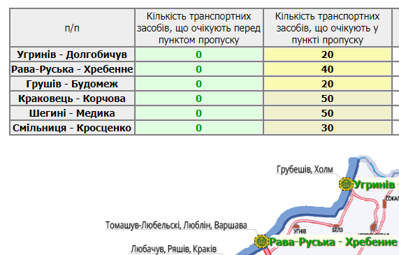 По 50 водіїв застрягли в пунктах пропуску Краковці й Шегинях, а 40 – у Рава-Руській.