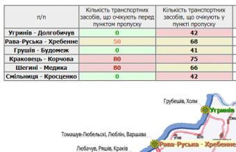 По 80 водіїв очікують перед пунктами пропуску в Краковці й Шегинях, а ще 50 – в Рава-Руській.