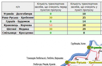 116 транспортних засобів очікують у пунктах пропуску на Львівщині, а ще 110 – перед ними.