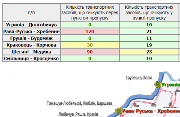 94 водії транспортних засобів очікують у четвер, 22 лютого, в прикордонних пунктах пропуску на території Львівської області, а ще 240 – перед ними.