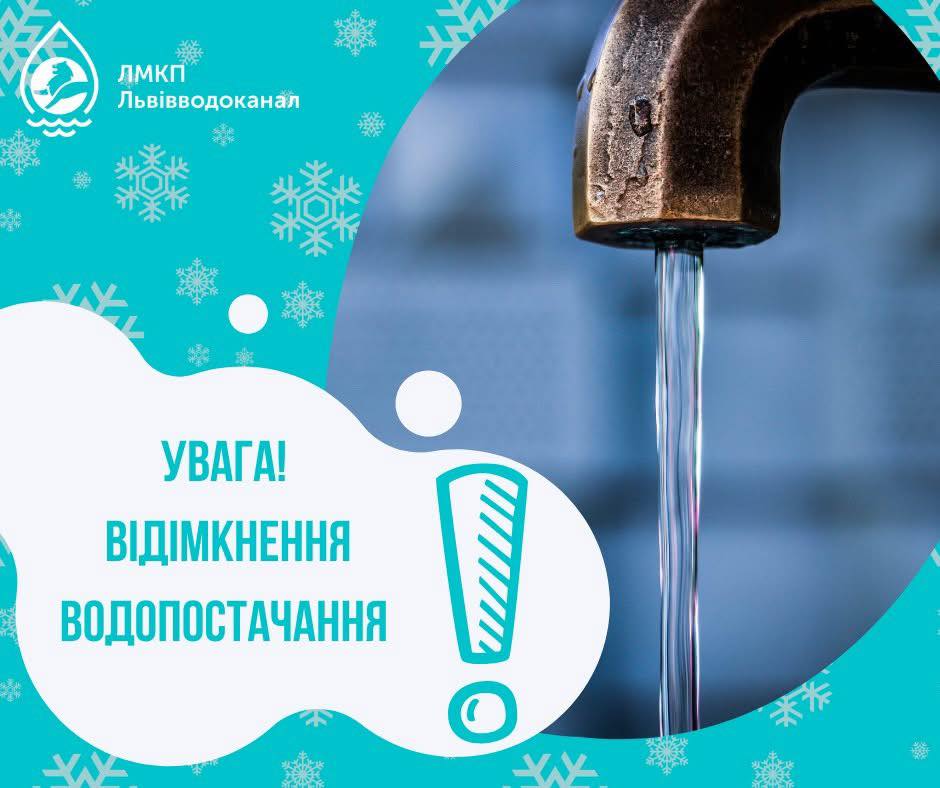 Припинено водопостачання у зв‘язку з аварійно - ремонтними роботами з ліквідації витоку за адресою вулиць Князя Романа - Шухевича.