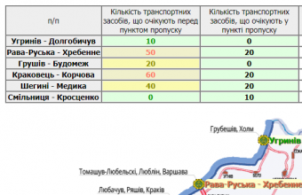 70 водіїв транспортних засобів очікують у прикордонних пунктах пропуску на території Львівської області, а ще 180 – перед ними.