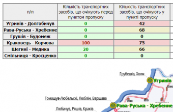 75 водіїв очікують у пункті пропуску в Краковці, 68 – у Рава-Руській, 66 – у Шегинях, 42 – в Угриневі.