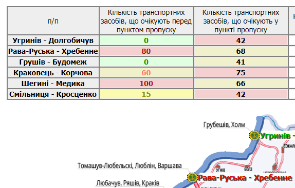 100 водіїв очікують перед пунктом пропуску в Шегинях, 80 – у Рава-Руській, а 60 – у Краковці.