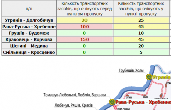 150 транспортних засобів очікують перед пунктом пропуску в Краковці, а сто – в Рава-Руській.