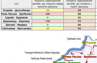150 транспортних засобів очікують перед пунктом пропуску в Краковці, а сто – в Рава-Руській.