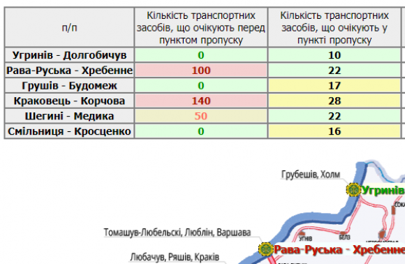 140 водіїв очікують перед пунктом пропуску в Краківці, сто – у Рава-Руській, а 50 – у Шегинях.