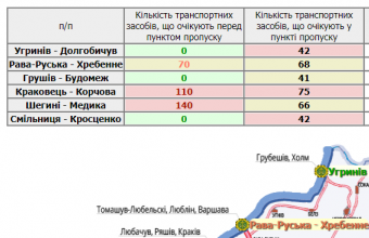 140 водіїв очікують перед пунктом пропуску в Шегинях, 110 – у Краковці, а 70 – у Рава-Руській.