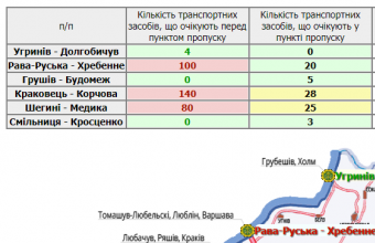 140 транспортних засобів очікують перед пунктом пропуску в Краковці, сто – в Рава-Руській, а 80 – у Шегинях.